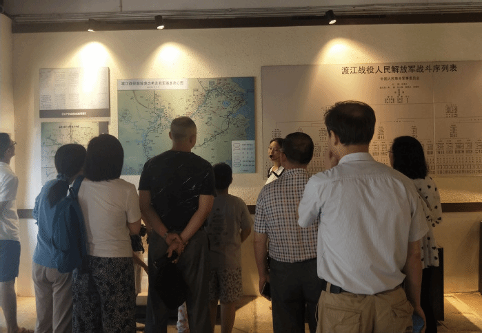 考察学习第二站——渡江战役总前委旧址纪念馆,在这里刘伯承、邓小平、陈毅、粟裕、谭震林指挥了当年波澜壮阔的解放战争,由此进一步实现“打过长江去,解放全中国”。伴随着纪念馆工作人员的语音讲解,党员们认真阅读纪念馆中丰富充实的史实记载,仔细参观老照片、实物等藏品,感受当年艰难的战斗过程,缅怀历史。参观结束后,面对鲜艳的党旗,大家重温入党誓词,庄重宣誓,向新中国成立70周年和建党98周年致敬。