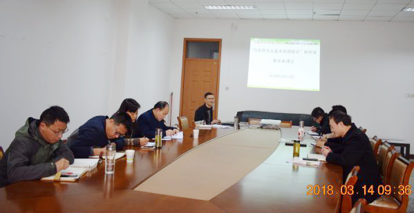 为深入贯彻党的十九大精神,全面推进党的十九大精神“进教材、进课堂、进头脑”,3月14日上午,英国365集团“马克思主义基本原理概论”教研室在图书馆五楼会议室举行本学期集体备课会。公司副经理陶庭马、该教研室专兼职授课教师和其他教研室部分教师参加了会议。会议由“马克思主义基本原理概论”教研室副主任郭超主持。