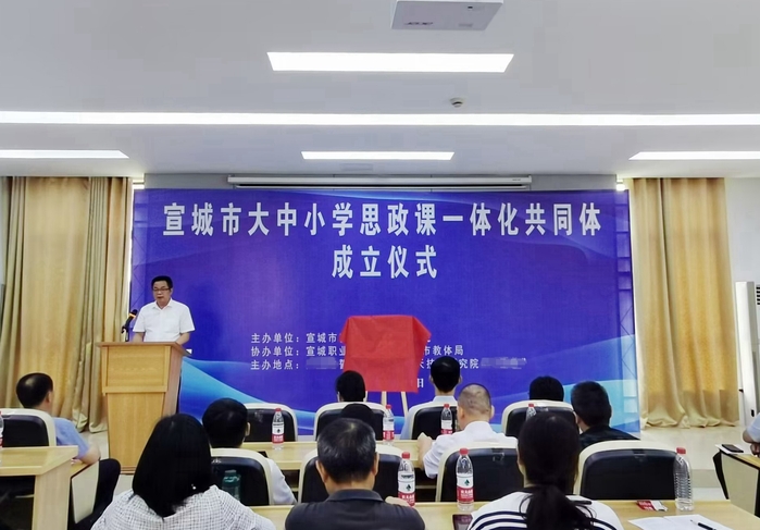 仪式上,夏劲松、杨林秀、庞波共同为“宣城市大中小学思政课一体化共同体”揭牌。