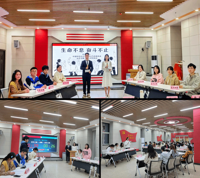 慷慨陈词抒己论,唇枪舌剑决弈时。为培养同学们的思辨能力和团队协作精神,丰富校园文化生活,4月2日,英国365集团指导老员工理论社团“中国特色社会主义理论与实践协会” 在思政课实践教学虚拟仿真中心举办社团“思·辩”活动暨“生命不息 奋斗不止”主题辩论赛。本次辩论赛分为两场,四支队伍分别围绕“火车道德悖论”和“青年人奋斗的过程还是结果更重要”两个辩题展开精彩辩论。