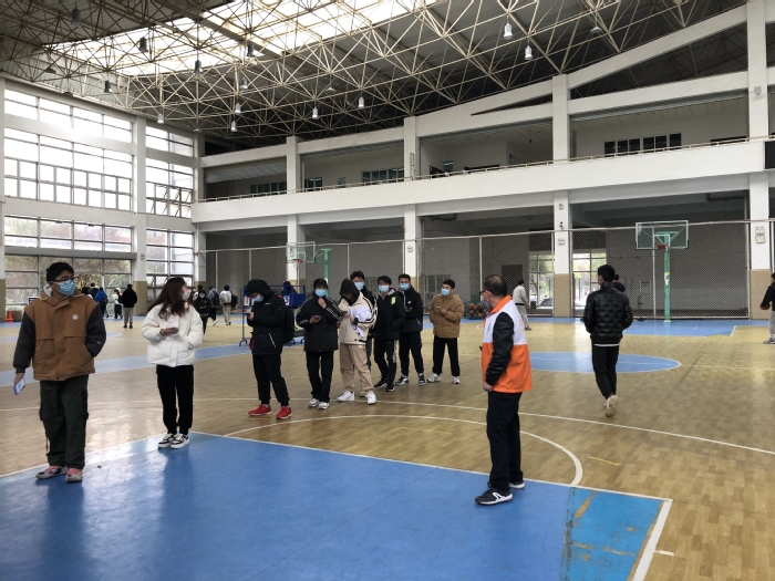 一到检测点,党员教师们迅速穿上黄马甲,熟悉工作流程,主动对接做好志愿服务工作。“请大家佩戴好口罩,保持一米距离,提前打开安康码。”同志们不时对排队参加核酸检测的同学进行温馨提醒,并与医护人员密切配合,引导同学们保持安全距离,排队采样,共同保障整个核酸检测现场秩序井然,检测流程快速高效。