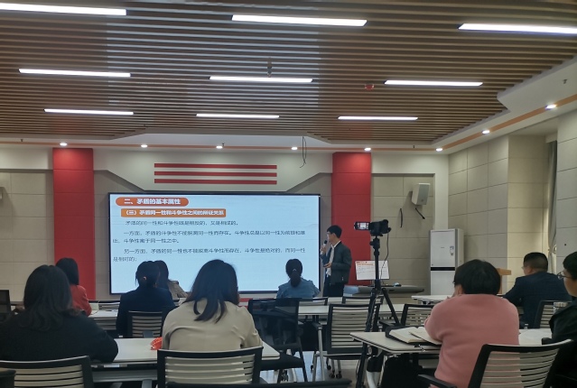 参加本期教学展示的是马克思主义原理教研室的杨军、形势与政策教研室的孙丹丹和思想道德与法治教研室的夏正慧三位老师。杨军以“马克思主义基本原理”课“对立统一规律是事物发展的根本规律”作为展示内容,从说教材、说教法、说教学过程等方面展开说课,以“物质运动第一推动力是什么”问题作为教学导入,引发员工思考,从矛盾的基本属性、矛盾的同一性和斗争性在事物发展中的作用、矛盾的统一性和斗争性原理的方法论要求三个方面进行层层剖析,逻辑严密,内容丰富,哲理深刻。孙丹丹以“形势与政策”课“百年未有之大变局有何之变”作为展示内容,从教学目标、教学方法、教学思路、教学反思等方面展开说课,以李鸿章“三千年未有之大变局”论断作为教学导入,引导员工进行雨课堂弹幕互动开启授课,进而启发员工思考当今中国面临百年未有之大变局,有何之变?之后,从世界经济重心发生改变、科技革命与产业革命发生改变、全球治理发生改变三个维度分析了百年未有之大变局的三大变量,案例新颖,分析抽丝剥茧。夏正慧以“思想道德与法治”课“因真实可信而具有强大的道义力量——弃普世价值、扬共同价值”作为展示内容,从说教材、说教法、说教学过程、说教学反思等方面展开说课,以雨课堂投票互动“你更愿意pick普世价值还是共同价值”作为教学导入,引导员工参与课堂,从前提(抽象的人与现实的人)、目标(一统独霸与合作共赢)、特质(封闭排外与共建共享)三个维度将普世价值与共同价值进行对比分析,最后得出结论:普世价值不普世,双标灯塔真双标,共同价值是正道。案例引用富有实效,内容讲解有理有据,结论得出水到渠成。