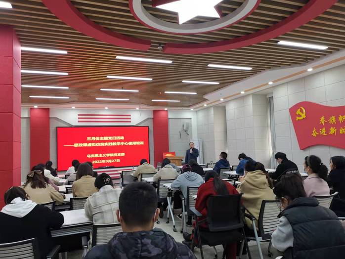 3月27日下午,公司党支部在思政课实践教学虚拟仿真中心举办“智慧思政”三月份主题党日活动,对全院教师进行虚拟仿真实践教学培训。活动由公司党支部副书记陶庭马主持、党务秘书郭玉琼主讲。