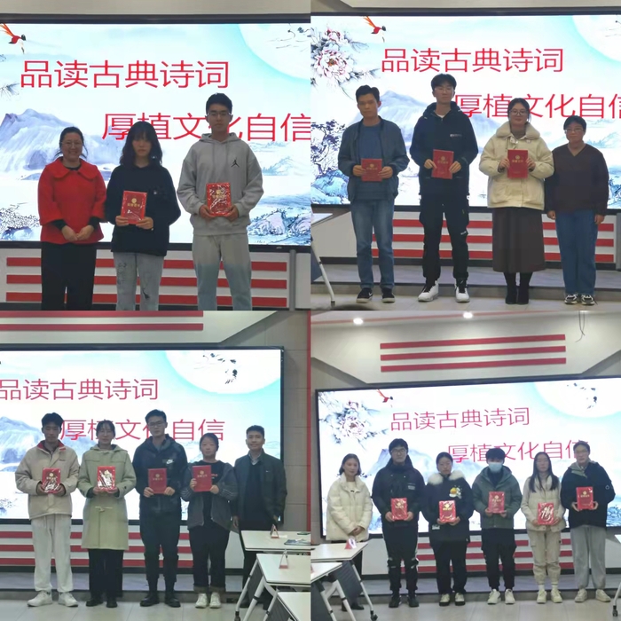 经过激烈的比赛,角逐出了一、二、三等奖。青年教师宣讲团成员李飞飞做点评,希望同学们以本次活动为契机,增进对古典诗词的了解,增加学习古典诗词的兴趣,丰富精神生活,坚定文化自信。