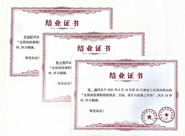 三位青年教师经过学习,都深感此次工作坊的学习经历启发了他们对课程思政建设的新思考,打开了教学研究视野。张瑜表示:“做好课程思政,要坚持教书和育人的有机统一,努力做到专业课教师与思政课教师的同向同行。作为思政课教师,要肩负起时代赋予自身的使命,充分发挥自身的积极性、主动性、创造性,专业课教师要深入挖掘专业课中的思想政治教育元素,使各类课程与思政课程形成协同效应。”