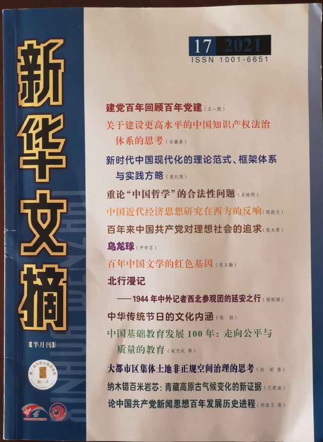 《新华文摘》由人民出版社主办、中国出版集团主管的大型理论性、综合性、资料性文摘类权威期刊,旨在选录或摘编高质量、有重要参考价值的学术论文。该院青年教师论文被《新华文摘》摘录,说明文章具有理论前沿性、学术探索性和研究价值性。
