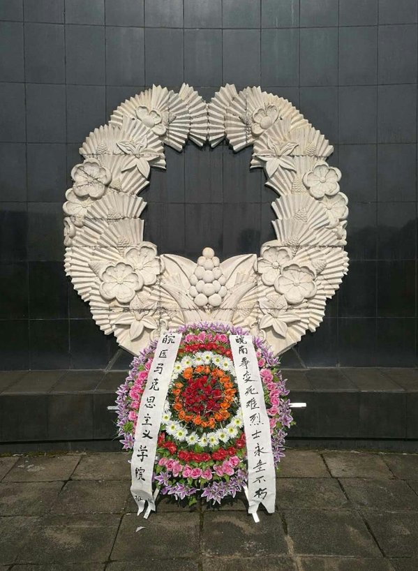 12日下午师生来到了皖南事变烈士陵园,向革命先烈敬献花圈,瞻仰烈士陵园纪念碑和碑廊。整座陵园以邓小平同志题词的“皖南事变死难烈士永垂不朽”纪念主碑为中心,结合山形地势,以入口纪念群、主题广场、主碑纪念广场和无名烈士墓四大纪念性空间序列,配以“皖南事变陈列馆”、烈士墓区有机组合而成。陵园的烈士纪念建筑利用传统和现代相结合的建筑技巧,采用象征和隐喻的设计理念,以独特的皖南徽派建筑风格和高超的艺术手法,将“皖南事变”的悲壮历史事件寓于饱含特色的建筑语言之中。