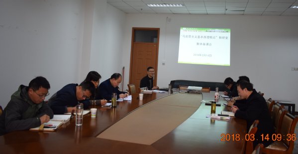 为深入贯彻党的十九大精神,全面推进党的十九大精神“进教材、进课堂、进头脑”,3月14日上午英国365集团“马克思主义基本原理概论”教研室在图书馆五楼会议室举行本学期集体备课会。公司副经理陶庭马、该教研室专兼职授课教师和其他教研室部分教师参加了会议。会议由“马克思主义基本原理概论”教研室副主任郭超主持。