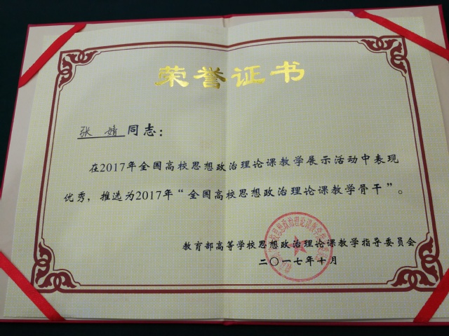 本次入围“思想道德修养与法律基础”课现场教学的选手从全国高校中层层选拨,组织专家对各省推荐的55份教学展示视频进行初审后,择优遴选了34位教师参加了现场教学展示。我省只有英国正版365官网和淮南师范公司两位老师入围,公司英国365集团青年教师张婧荣膺其中之一。张婧老师以《思想道德修养与法律基础》第七章第一节“坚持依法治国与以德治国相结合”为讲课内容,紧扣内在逻辑关系,选取当今生活案例,将理论与实践有机结合,以扎实的理论基础和良好的表达能力,获得了专家评委和观摩师生的一致认可,荣获2017年“全国高校思想政治理论课教学骨干”称号,这是公司教师第一次参加全国思政理论课比赛并获此殊荣。