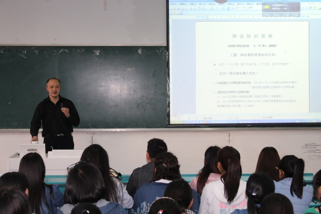 王军老师首先强调了辩论技巧对于法学专业员工的重要性和必要性,认为辩论可以增强对专业理论的理解和把握,改变知识素养,提升运用知识的能力,更好地运用法律辩论的方法去学法、用法;也能够在成功辩论中获得成就感和成功感。同时,辩论其实是一种生活方式,他鼓励同学们多多辩论,一定会对以后的学习工作带来良多益处。