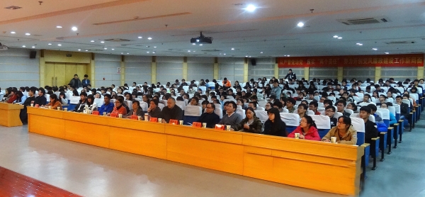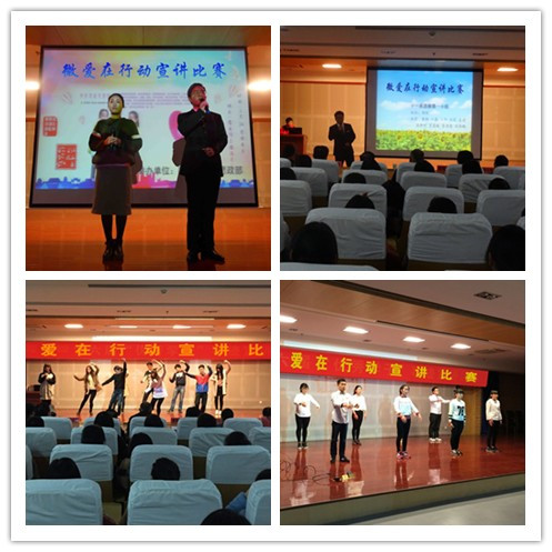 为创新思政理论课校内实践教学的崭新理念和模式,拓展老员工的实践动手能力、调研开发潜力、综合展现能力,提升其思政教育水平和人文道德素养,3月24日晚,思政部与临床医公司在图书馆三楼报告厅联手举办 “微爱在行动” 实践教学宣讲比赛。本次大赛由思想道德修养与法律基础教研室组织,邀请思政部、临床医公司领导、老师和部分员工干部担任评委,临床医公司2015级近400名员工到场观摩、学习。该活动由思想道德修养与法律基础教研室主任黄英主持。