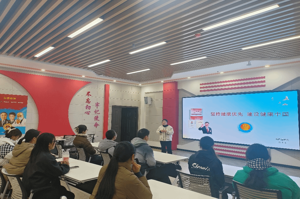 响应“健康中国”战略,主题宣讲入人心。社团指导教师李飞飞为同学们开展“坚持健康优先 建设健康中国”主题讲座,梳理新中国成立75年来卫生健康事业发展取得显著成就,并立足当前人民群众对健康的更高期待和要求,介绍全面推进健康中国建设的举措。通过讲座,向同学们强调“每个人是自己健康第一责任人”的理念,帮助同学们全面了解“健康中国”战略,提升个人健康意识、防病意识,切实感受健康中国建设的蓬勃发展。