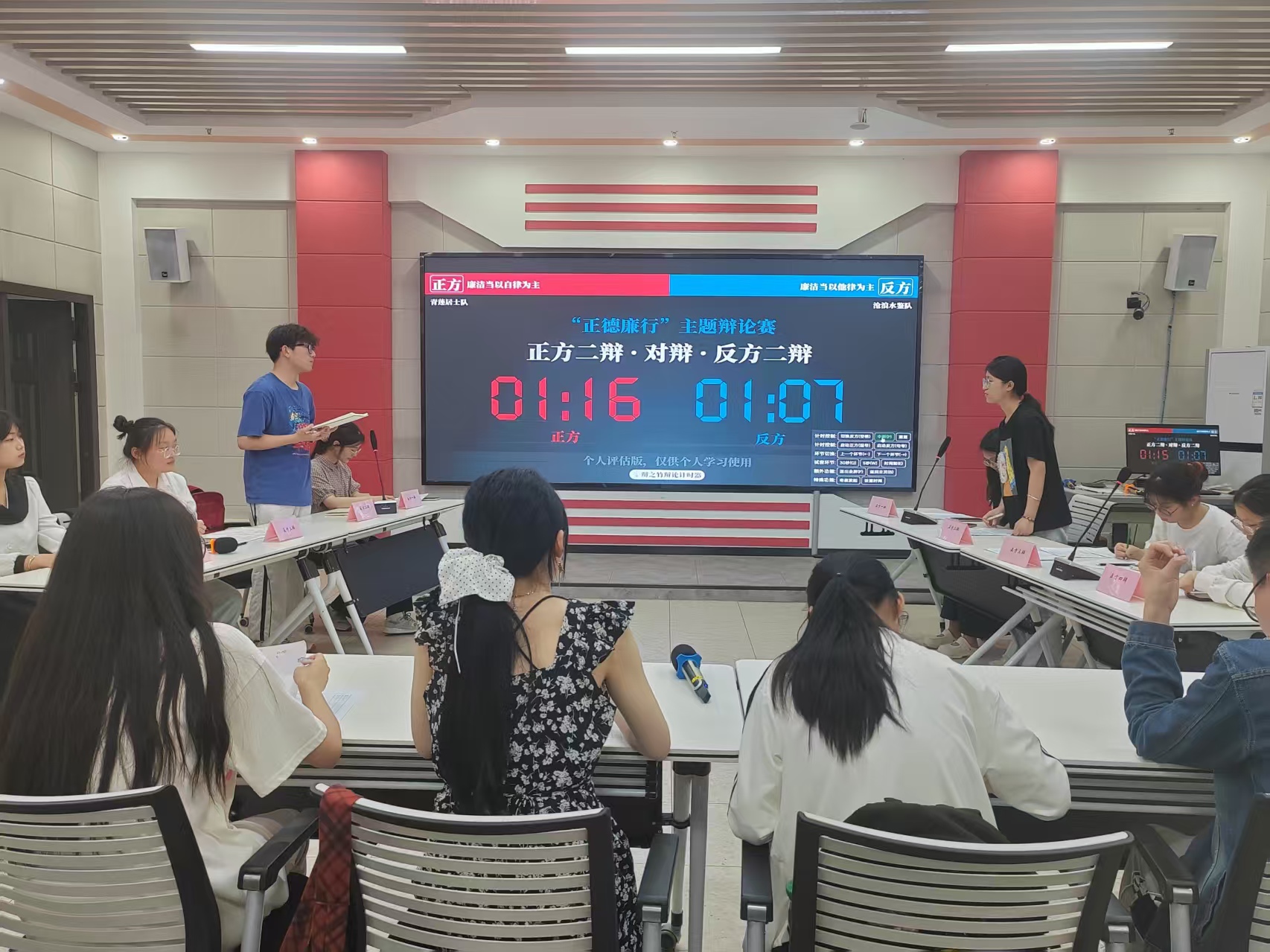 本次辩论赛以“正德廉行”为主题,围绕廉洁教育、自律与他律等核心议题展开激烈探讨。比赛阶段,参赛队伍就“廉洁教育重在提升个人素质还是制度建设”“廉洁当以自律为主还是他律为主”两大辩题展开辩论。辩手们引经据典,结合党的二十届三中全会关于“深入推进党风廉政建设和反腐败斗争”的部署,从制度规范、传统文化、现实案例等多角度切入阐述观点,展现了当代青年对廉洁文化的深刻理解与时代担当。