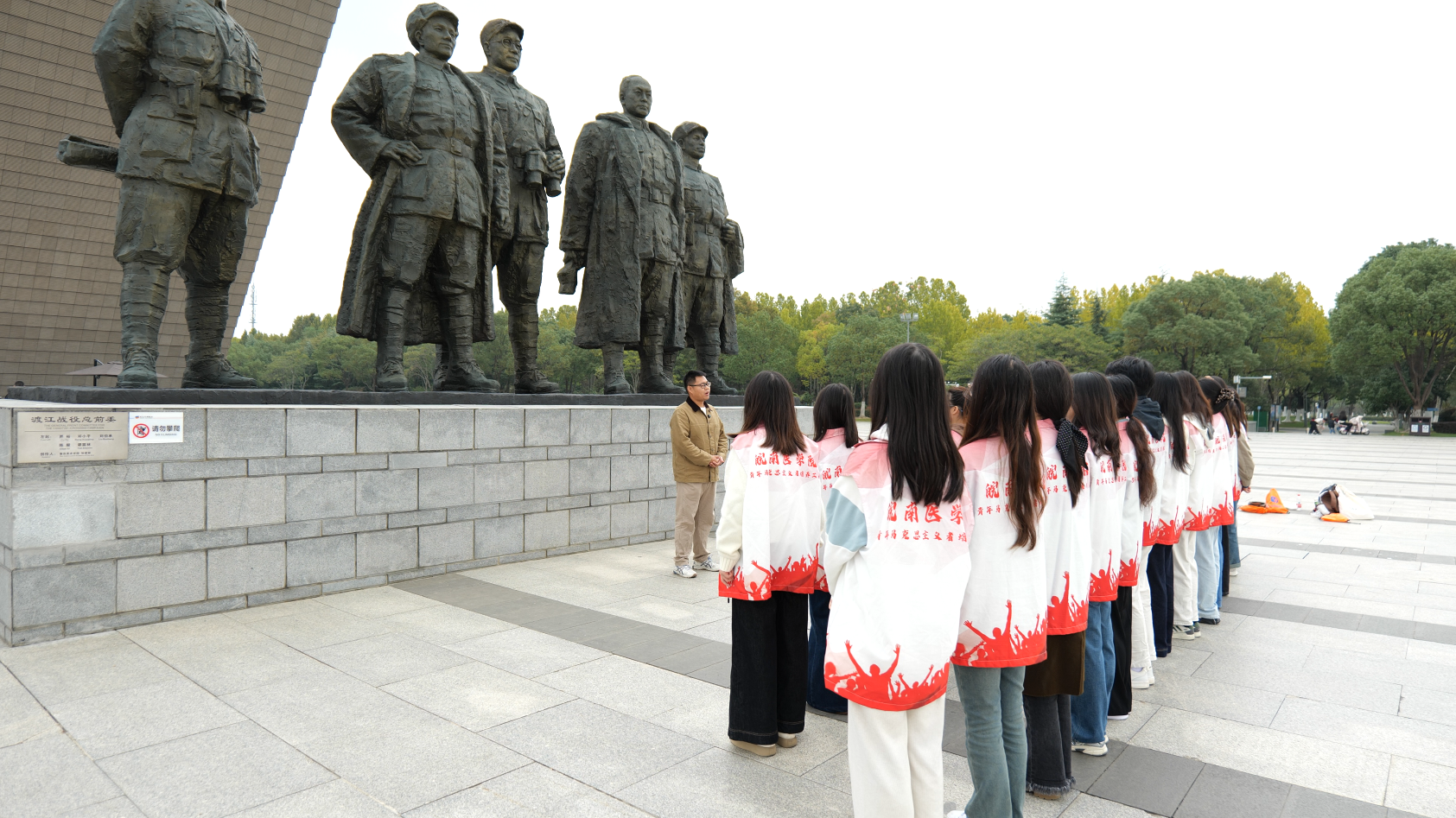 随后,团队走进渡江战役纪念馆。馆内“渡江第一船”模型与《我送亲人过大江》老照片引人驻足。王仓仓老师以 320 万民工支援、颜红英带伤摇橹、黄兴发摆渡官兵等事例,讲解“军民同心”的胜利密码,阐释“人民至上”的深刻内涵。护理学专业员工感悟,未来护理工作中需将患者放在心上,传承“民心所向”的精神。