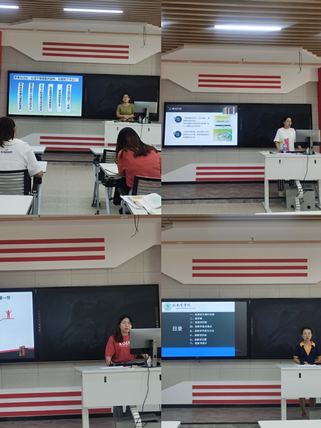 接着,三位青年教师赵敏奇、夏正慧、江丽针对新教材中的第一章“领悟人生真谛 把握人生方向”内容进行了精彩说课。她们从教材、教学目标、教学重难点、教学手段与方法、教学过程、板书设计、教学反思等方面进行全面说课,生动呈现了新教材使用过程中的教学设计与教学体验。为用好新教材、讲好新内容、进一步提升思政课教学质量打下了基础,并通过该交流活动得以互相学习、共同完善。