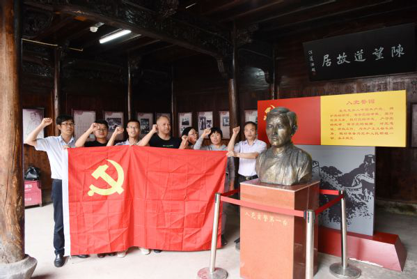 本次社会实践活动由马克思主义基本原理概论教研室和医学伦理学教研室联合主办,围绕的核心主题是“重温信仰的味道”。首站参观了陈望道故居。陈望道先生是著名的思想家、社会活动家、教育家、语言学家,著名的马克思主义传播者和中国共产党早期活动家,1920年翻译了《共产党宣言》,这是《共产党宣言》第一个中文全译本。在陈望道故居,师生们参观学习了陈望道先生的生平事迹、照片和珍贵藏品。在其塑像前,公司经理王军带领教师们重温入党誓词,马原教研室副主任郭超带领员工集体诵读《共产党宣言》经典片段,共同唤起对信仰的追随。通过瞻仰事迹,大家重温了历史,感受到了陈望道先生对于理想信念的执着追求,宣传和传播了马克思主义的精神。