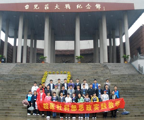 为切实加强思想政治理论课教学改革,积极探索提高思想政治理论课教学效果有效途径,在校领导和有关部门的大力关心和支持下,社科部于5月15日至16日组织医学一系、医学二系、医学三系、护理系、药学系、人文与管理系员工代表和社科部部分教师近五十人,在社科部主任王方根教授、副主任汪一江教授带领下,赴山东台儿庄大战纪念馆和铁道游击队纪念园参观考察,开展以“牢记历史,勿忘国耻”为主题的爱国主义和革命传统教育的实践教学活动。