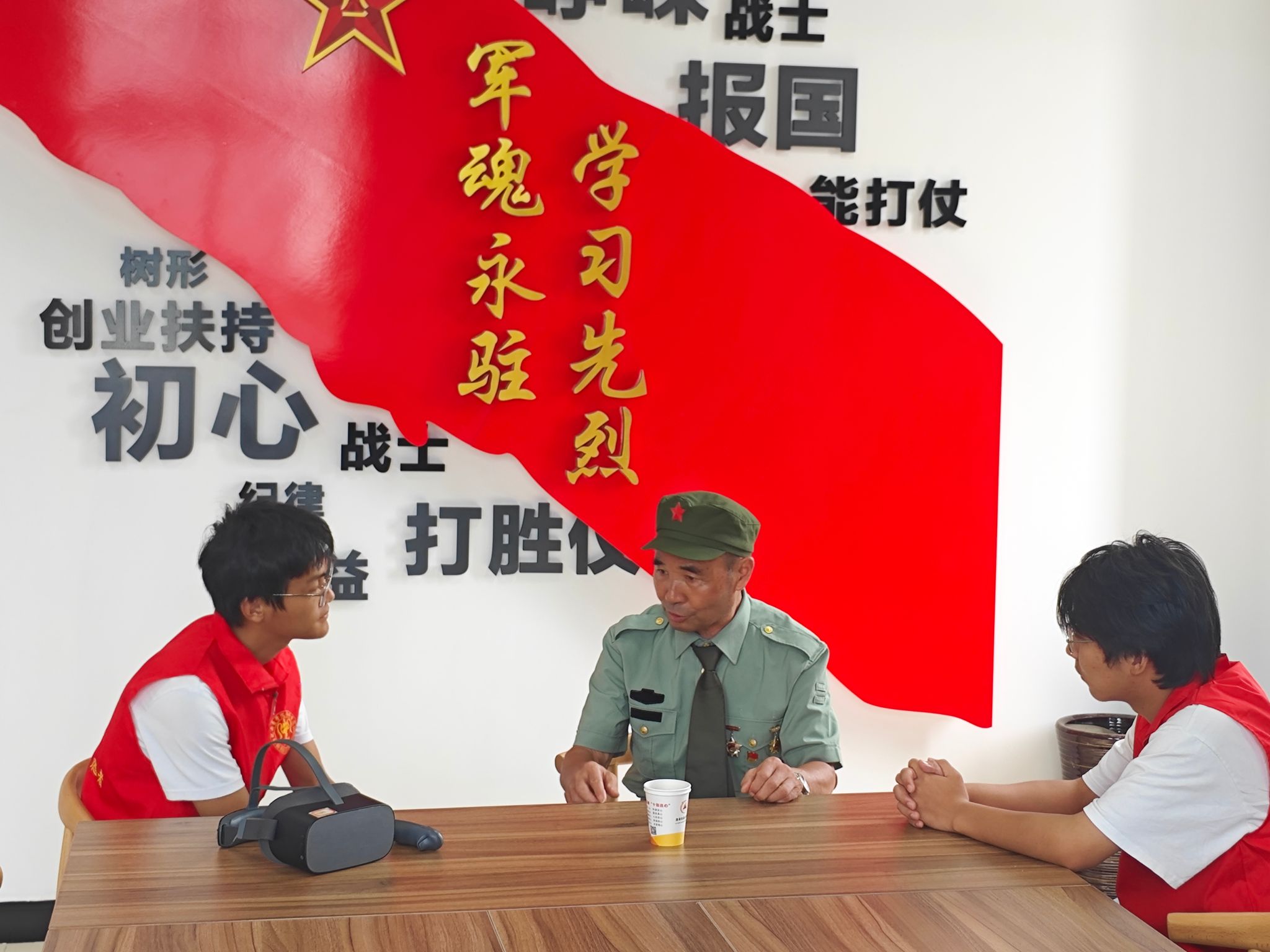 7月19日,在芜湖市退役军人事务局的协助下,实践团开展“专访退伍老战士”专题活动,采访参加对越自卫反击战的退伍老战士郭春发和张志祥,聆听他们用感人至深、铿锵有力的话语讲述自己参加对越自卫反击战的战斗故事。团队成员给两位老兵佩戴VR眼镜,让他们沉浸式参观全国各地红色文化场馆,两位老兵对数字赋能红色文化传播的创新方式表示高度赞赏。
