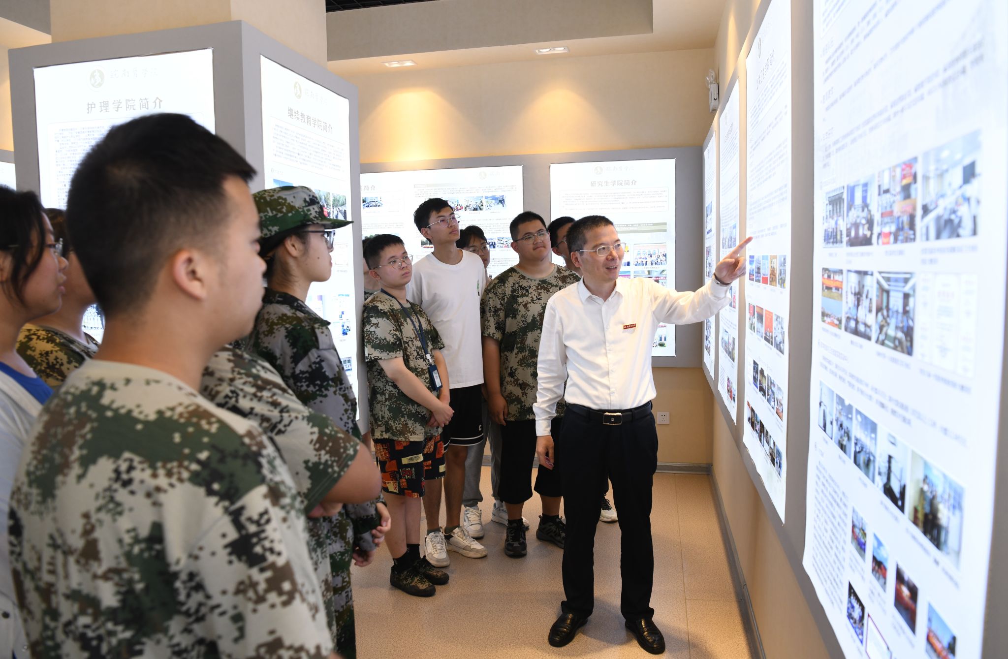 9月14日,党委副书记、经理姚应水带领2024级预防医学专业新生走进校史馆,为他们讲授了一堂别开生面的校史课。他从芜湖的历史底蕴和文化气息入手,引导同学认识芜湖、认识皖医、认识专业、认识自己;重点讲授了公司从皖南医事公司到芜湖医学专科公司,到安徽医公司皖南分院,再到独立建校的奋斗历程,以及公司近期开展的重点工作和取得的重大成绩。同时,结合自身对专业的理解和思考,姚应水勉励新生要明确目标和定位,注重理论和实践结合,拓宽专业视野与思维,珍惜来之不易的学习机会,在皖医精神的滋养下,与全校师生一同砥砺奋进,成为高水平医科大学建设的见证者、参与者和受益者。