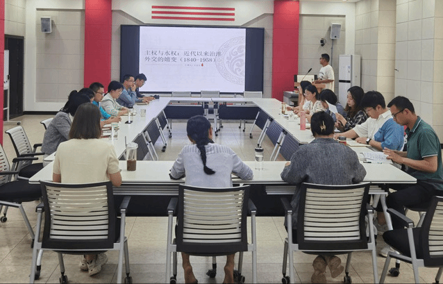 王仓仓以“主权与水权:近代以来治淮外交的嬗变(1840-1958)”为题作学术讲座。他以淮河治理为线索,详细介绍了近代以来伴随国际秩序变动导致淮河水权旁落的过程以及中国革命胜利后淮河水权复归的过程,指出正是社会主义制度的优越性,使得淮河治理能从受制于人转向独立自主,在治淮外交上发生根本性的转变。讲座内容丰富,史料详实,生动有趣,现场讨论气氛热烈,大家纷纷表示受益匪浅。