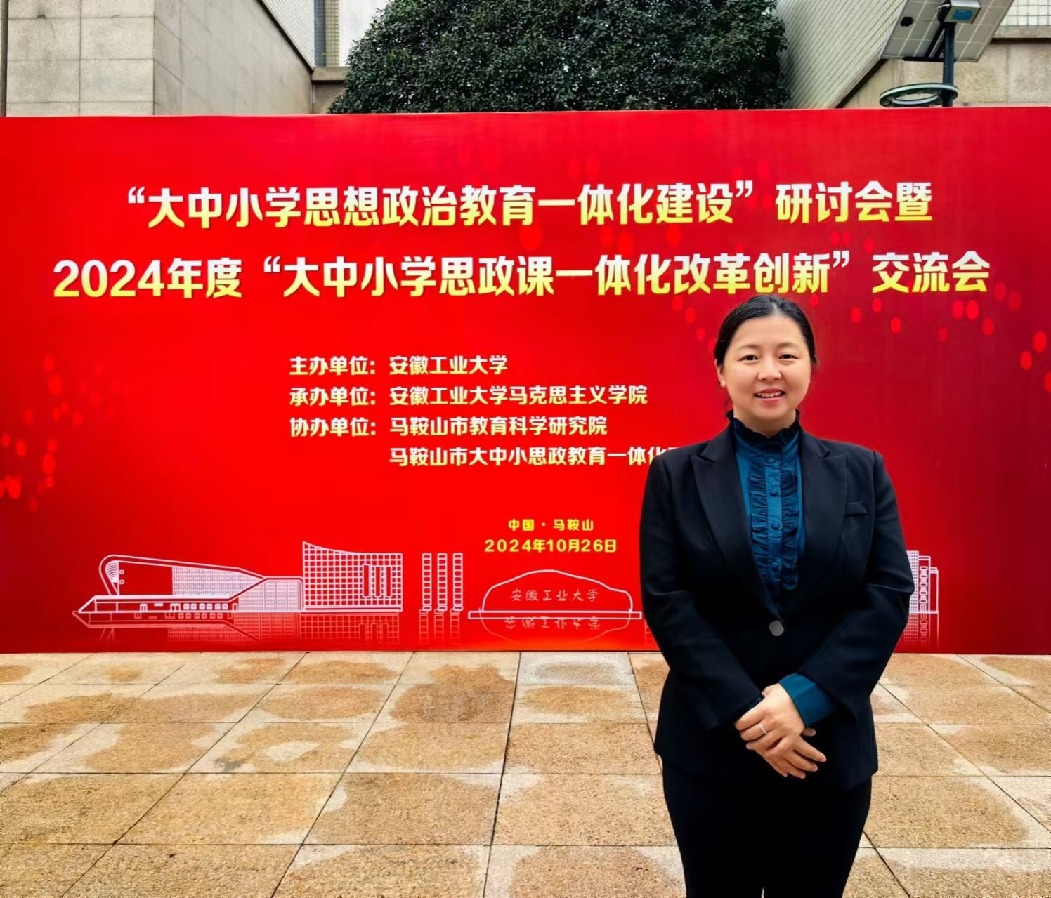为深入贯彻落实党的二十大报告提出的“推进大中小学思想政治教育一体化建设”、党的二十届三中全会提出的“推进大中小学思政课一体化改革创新”的重要精神,加快构建新时代大思政课育人格局,更好展现各单位建设成果,广泛开展经验交流,10月26日,“大中小学思想政治教育一体化建设”研讨会暨2024年度“大中小学思政课一体化改革创新”成果交流会在马鞍山召开,公司教师郭玉琼以文赴会。