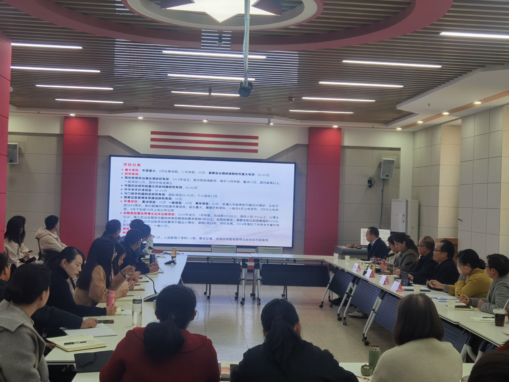 张崇旺以“2025年度国家社科基金项目申报策略与技巧”为题,从国社科项目申报的一般性问题、评审过程与评审程序、申报论证与填写技巧、青年教师申报国社科的建议四个方面,逐一介绍了国家社科基金项目申报的注意事项。同时结合具体案例,分享了国社科论证活页撰写的实用技巧,为与会教师提供了切实可行的指导建议。