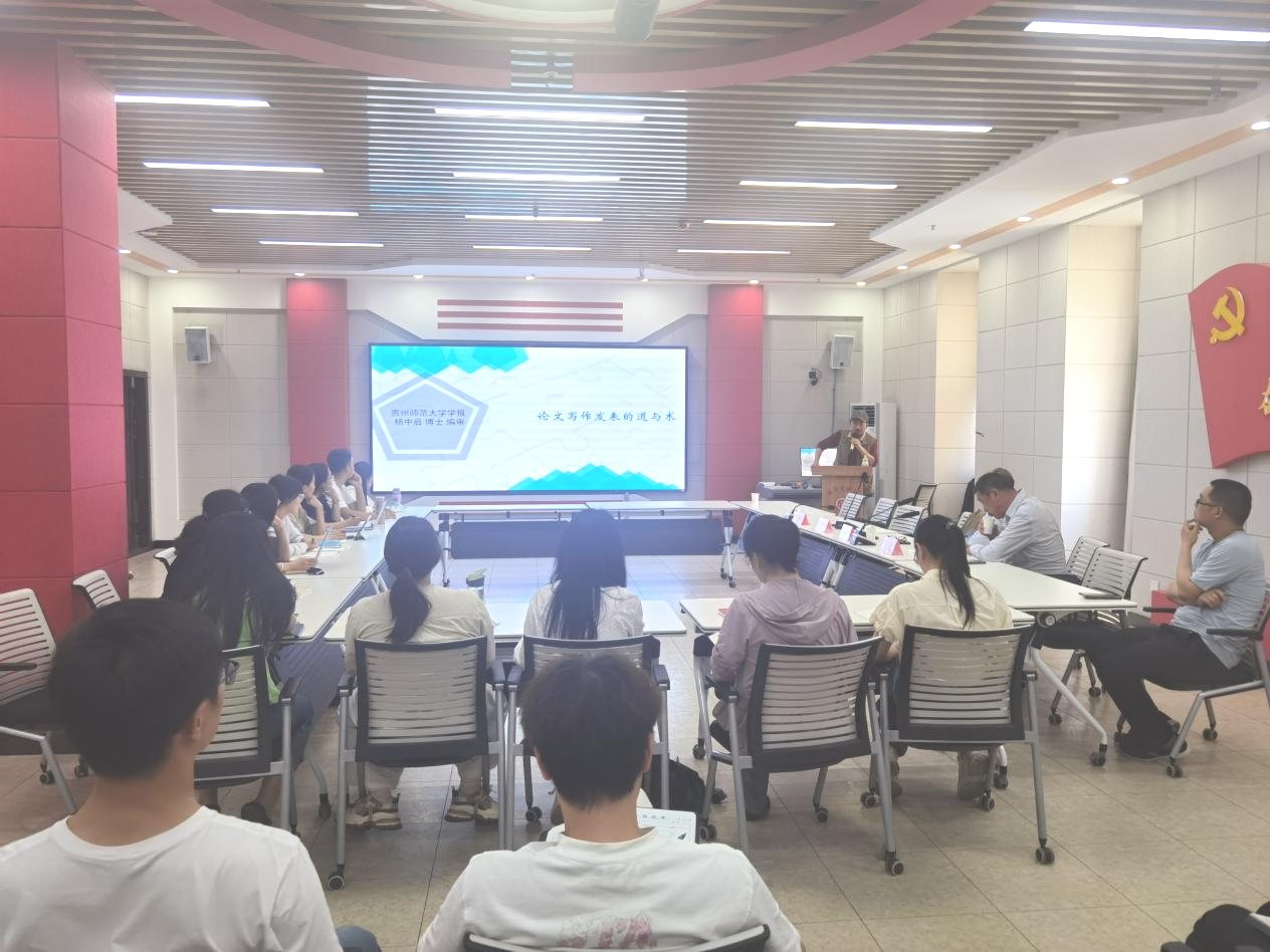为提升师生学术论文写作与发表能力,5月16日下午,英国365集团特邀贵州师范大学学报主编杨中启教授来院开展专题学术讲座。苏州大学英国365集团方文教授、公司经理陶庭马、副经理张婧,教师代表及全体研究生参加。